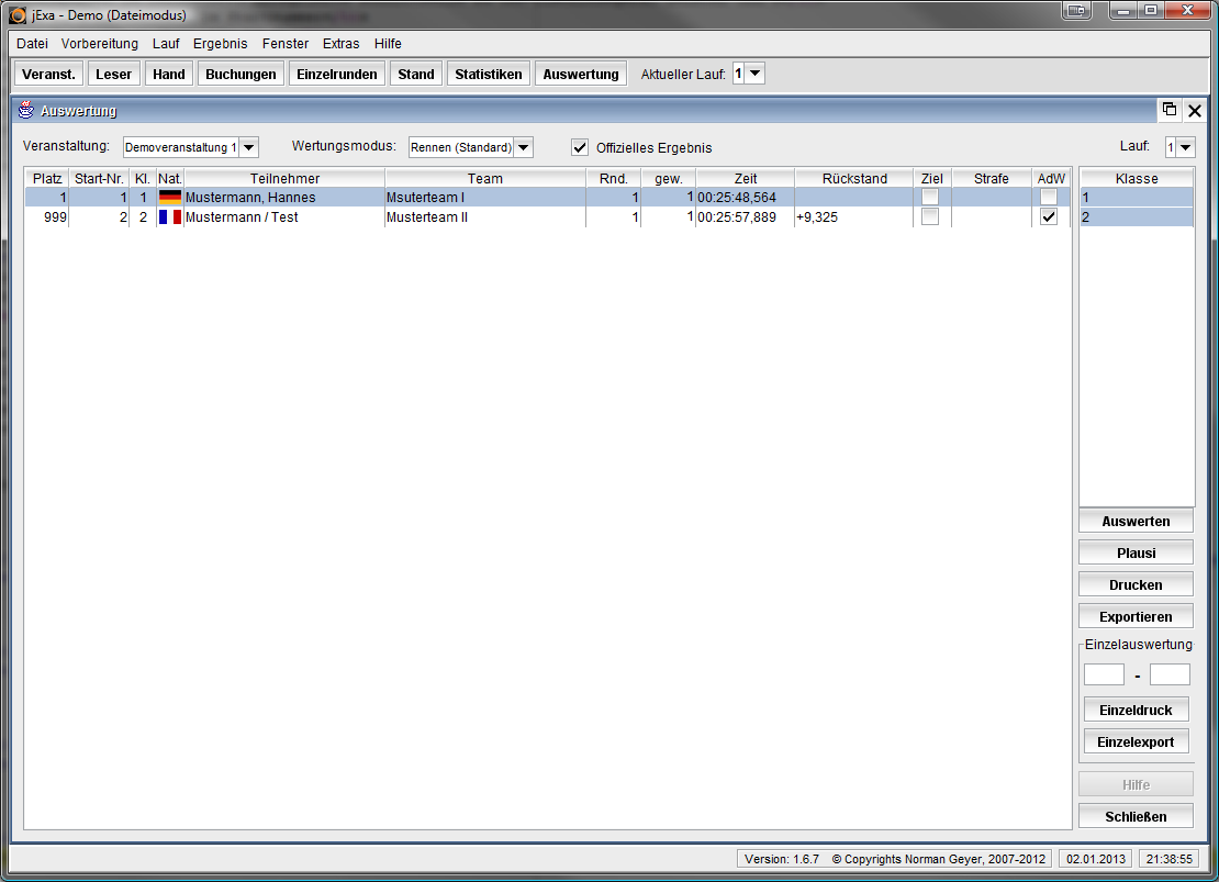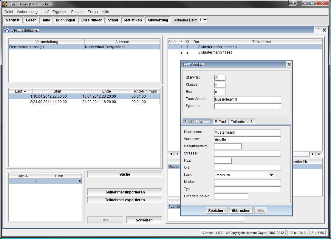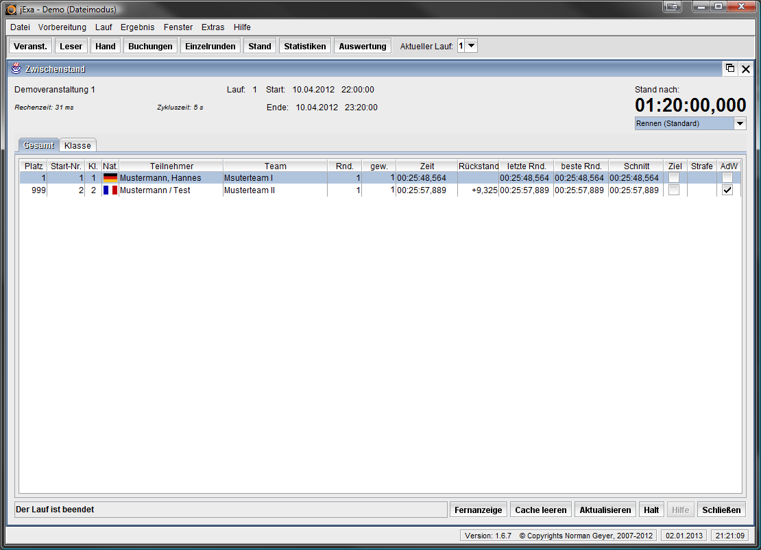 - beliebig viele Läufe je Veranstaltung